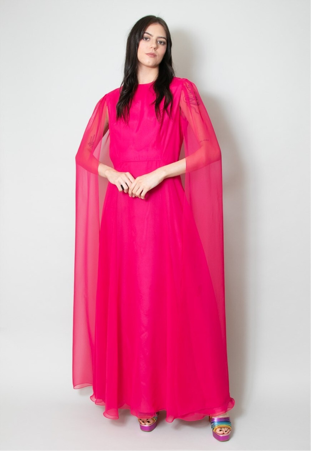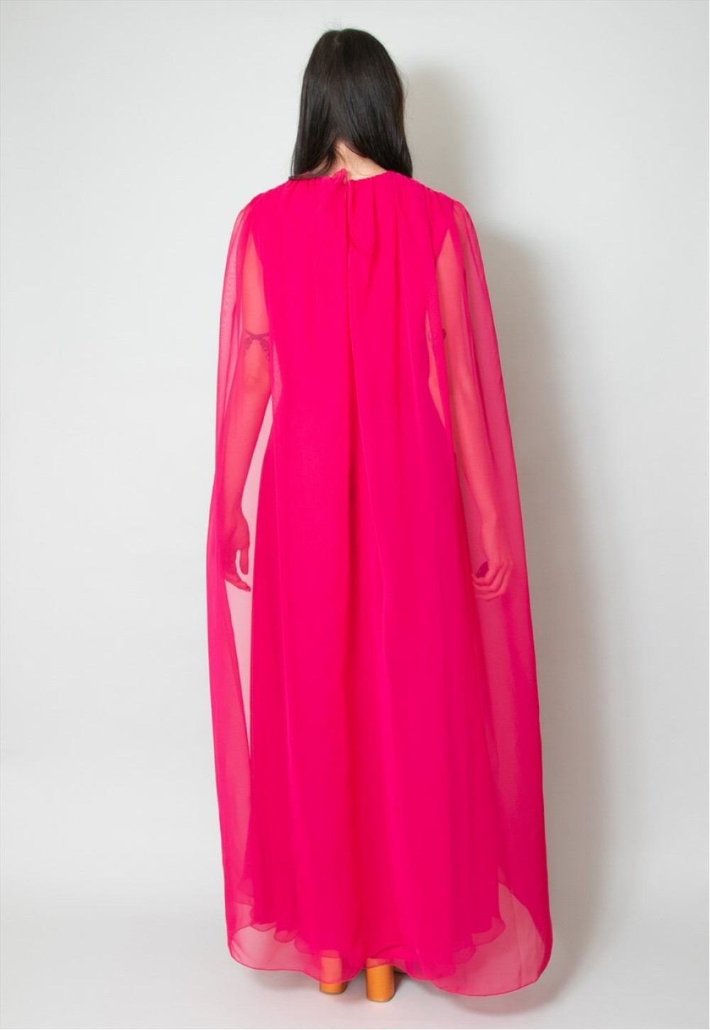 70's Vintage Ladies Maxi Dress Pink With Attached Cape