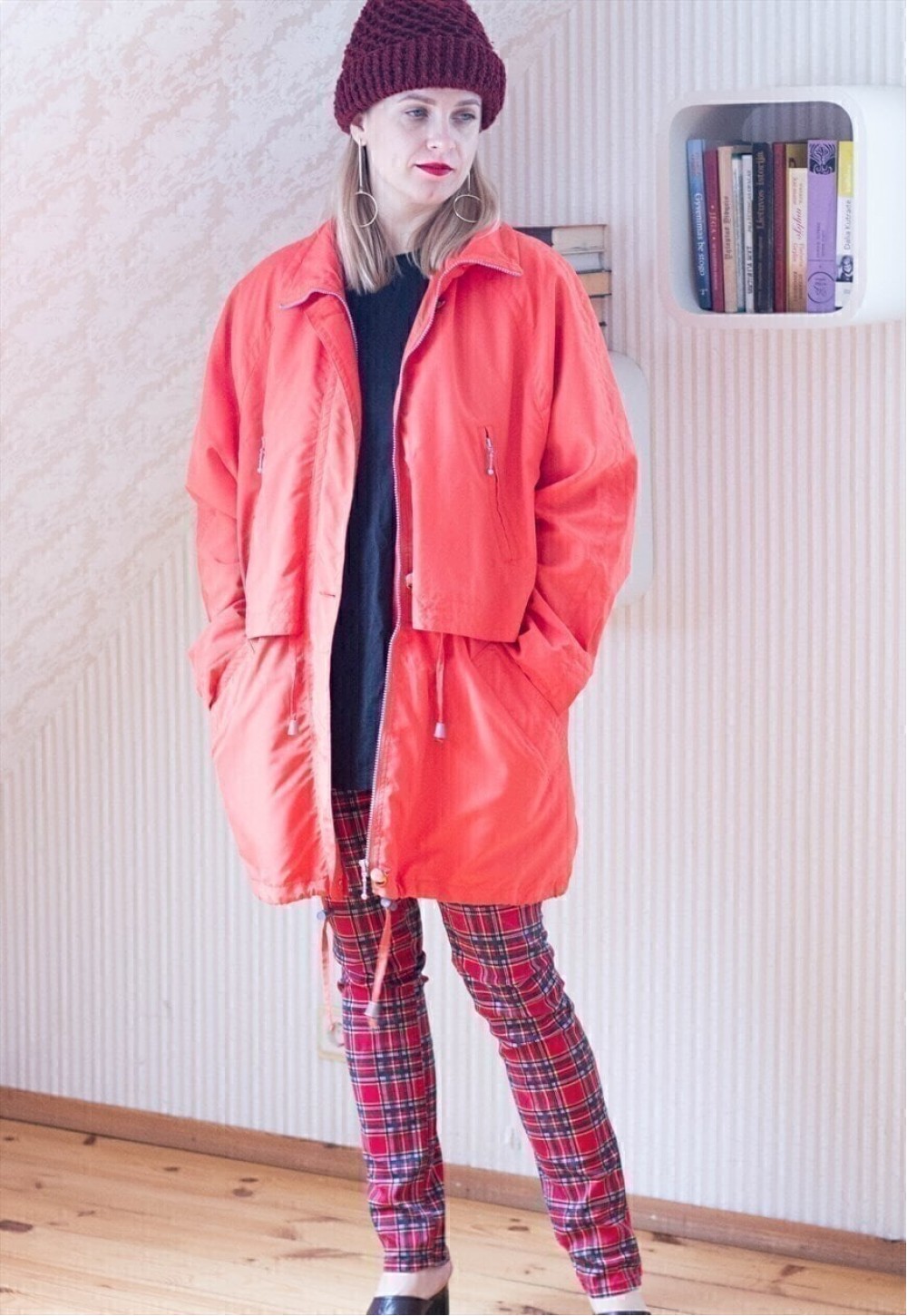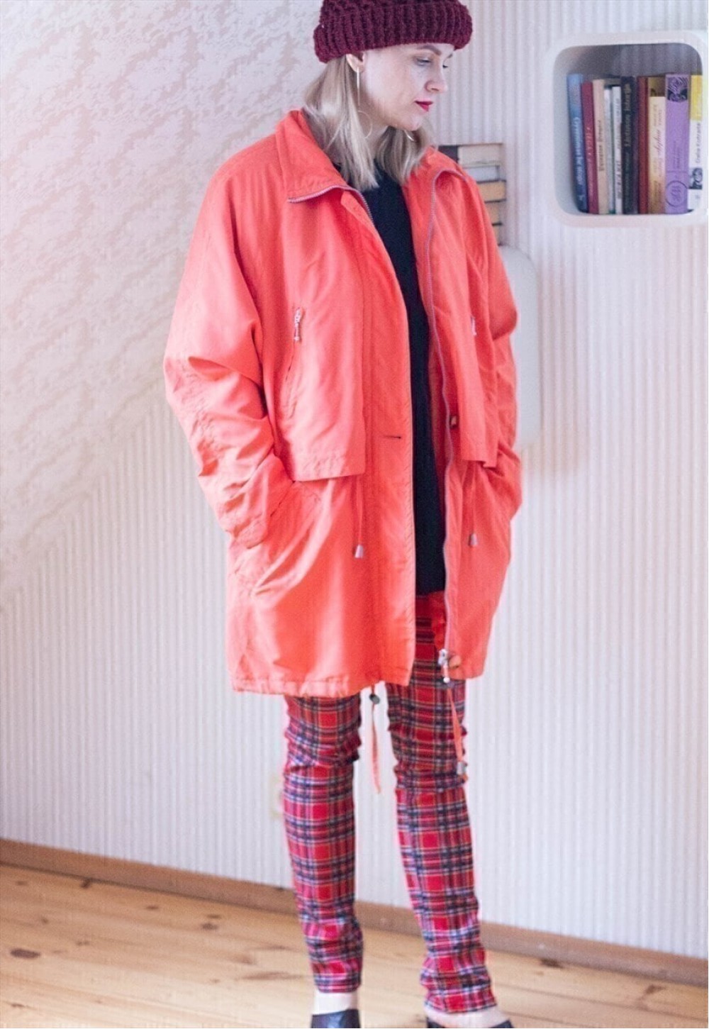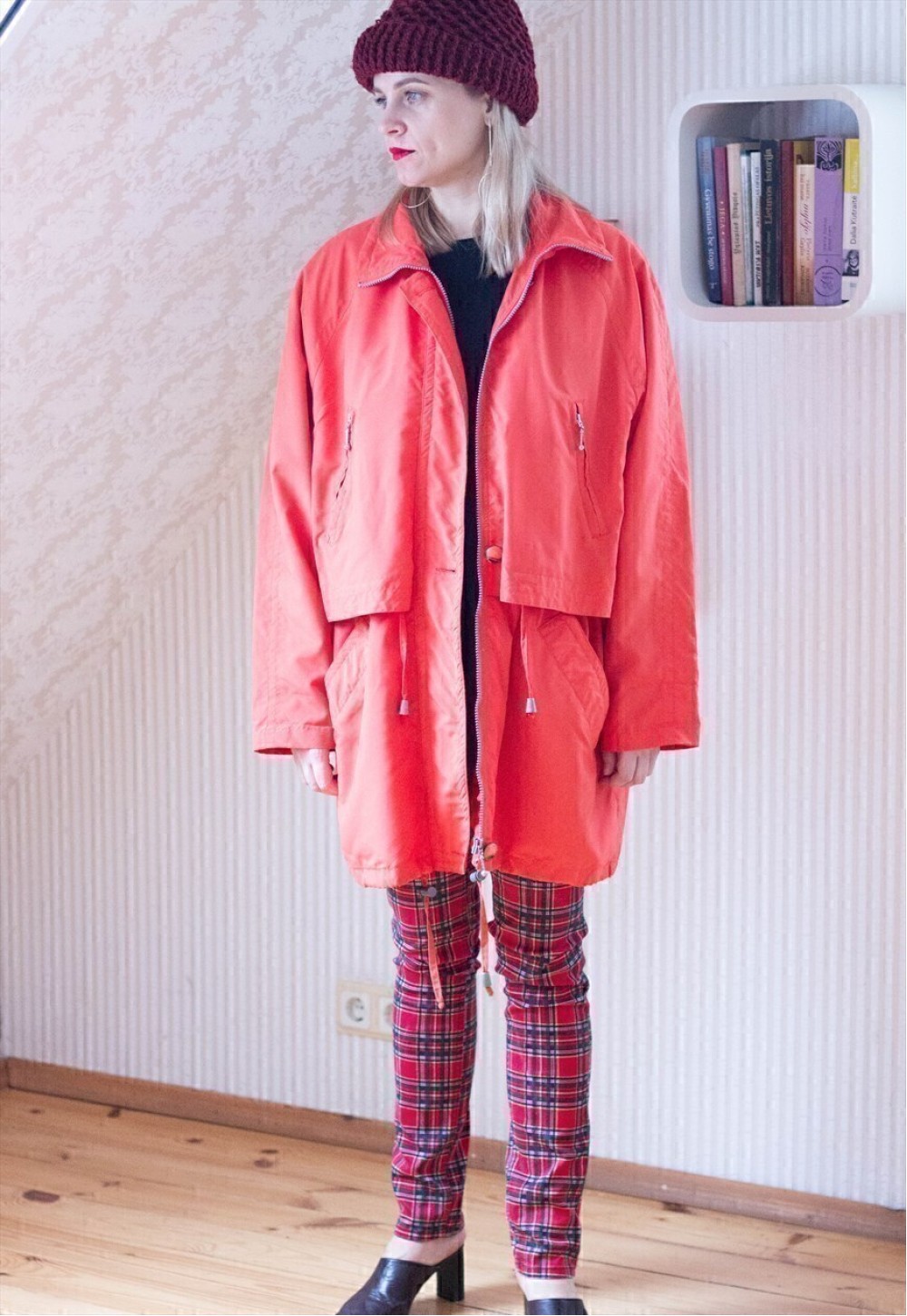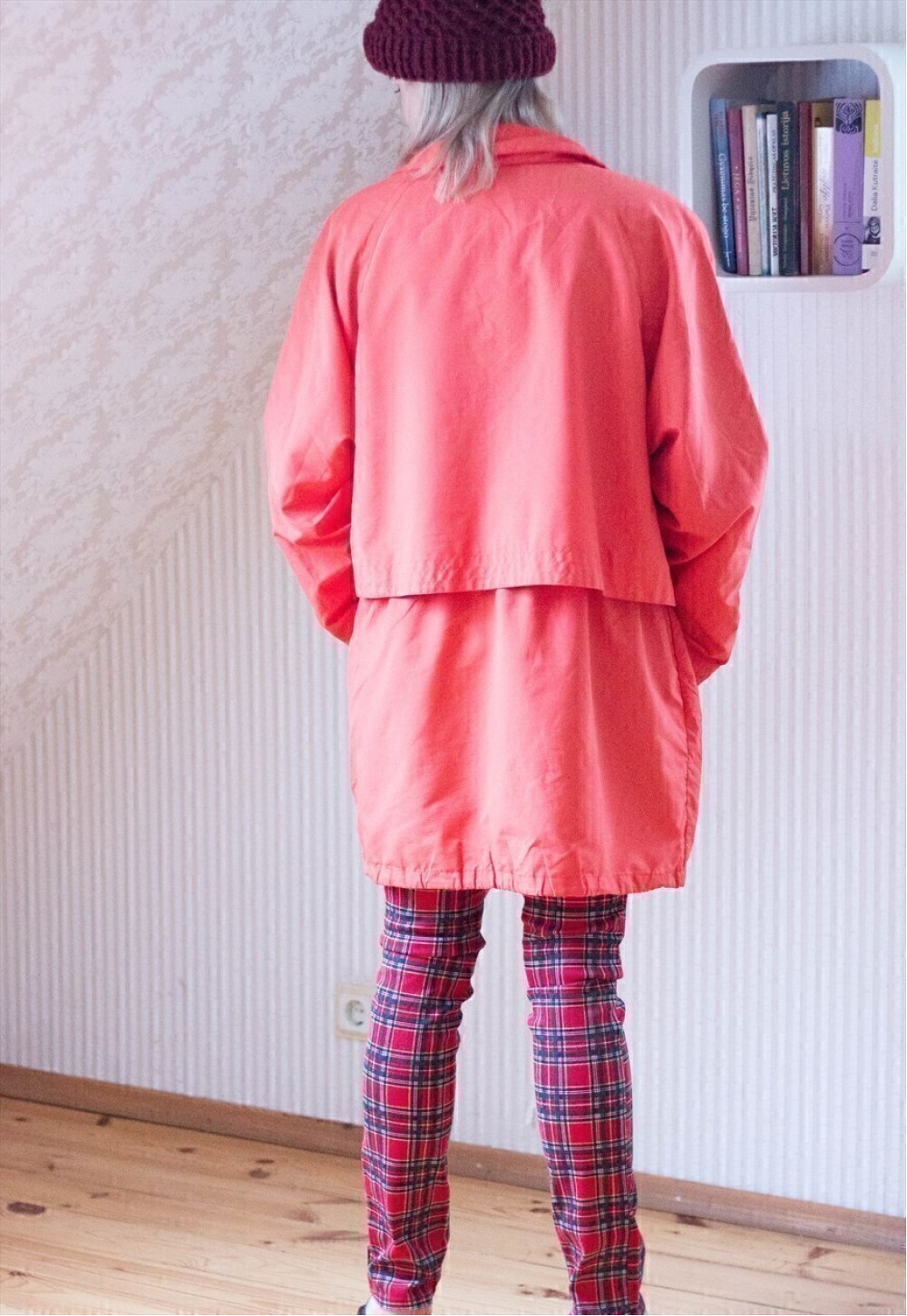 Lovely bright salmon pink red orange high neck vintage parka jacket. There is no size label. Model is a UK 10 and 5"4. Length of the jacket is 33 inches, chest is 24 inches. Please note this Lovely bright salmon pink red orange high neck vintage parka jacket. There is no size label. Model is a UK 10 and 5"4. Length of the jacket is 33 inches, chest is 24 inches. Please note this is a vintage item so minor signs of wear are expected.