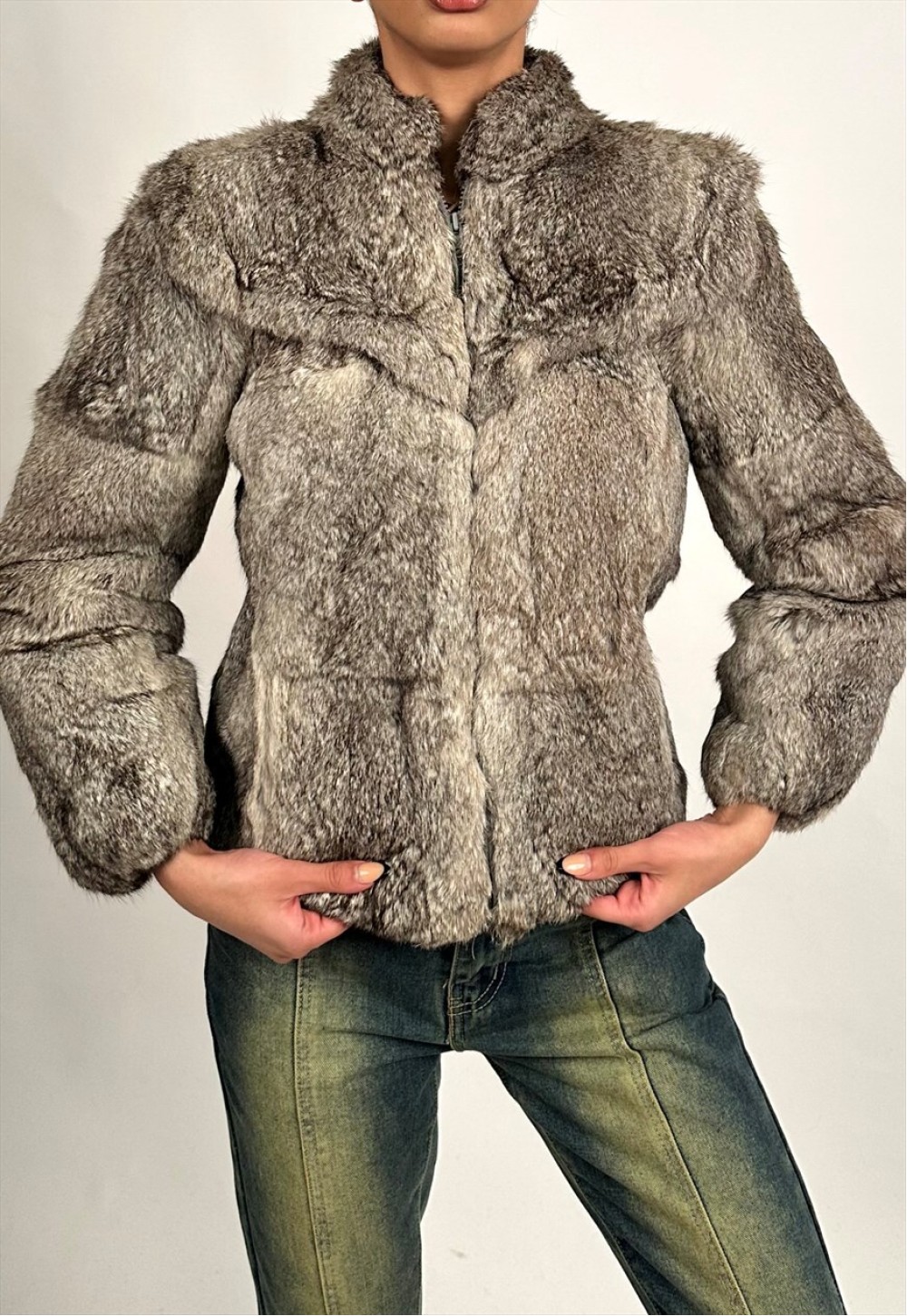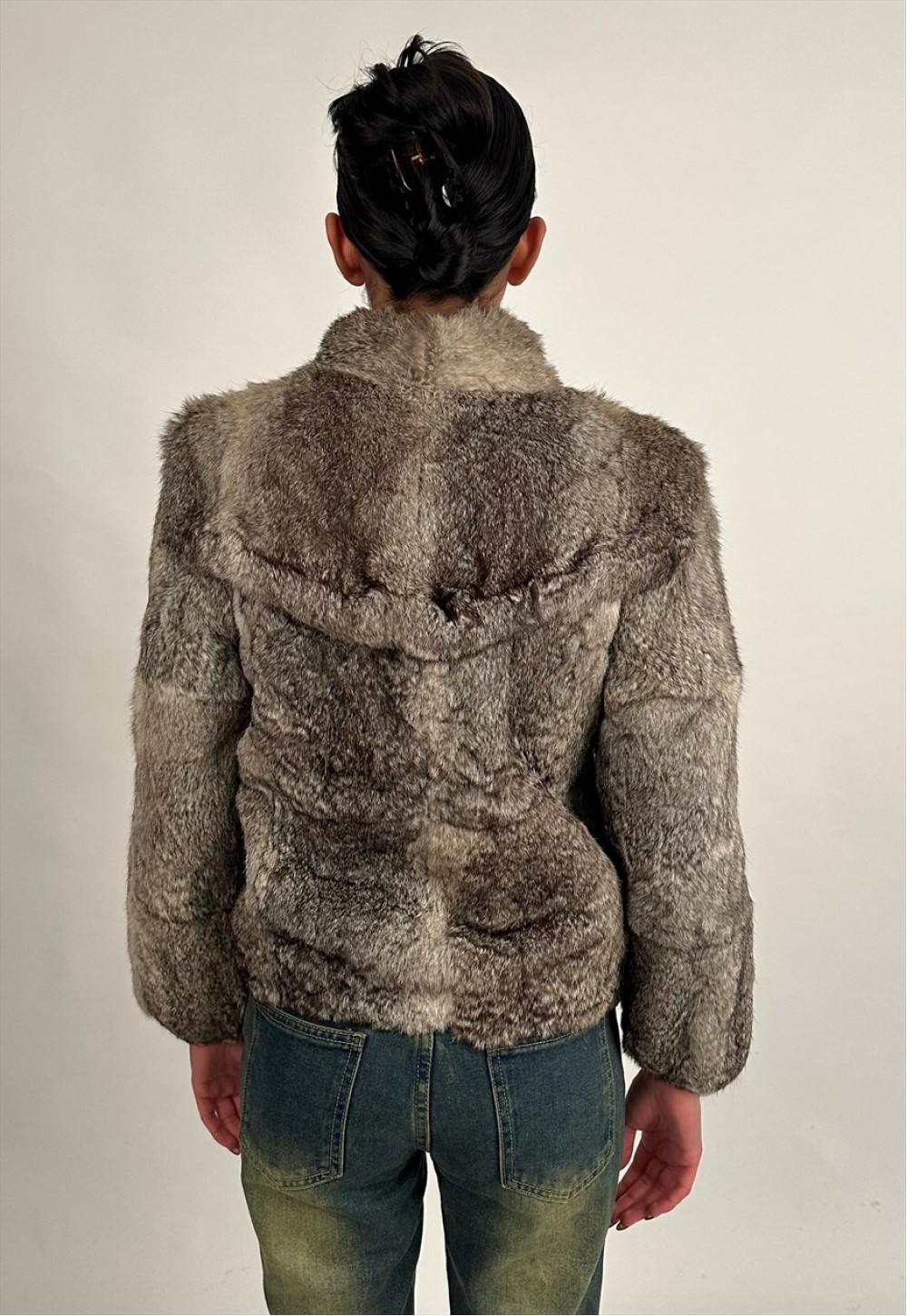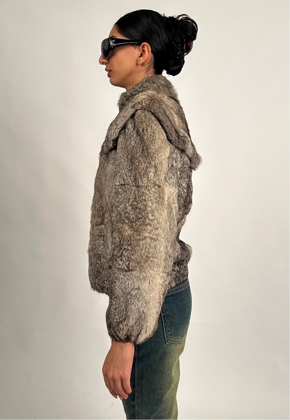 Vintage 70s Grey Faux Fur Short Jacket with Zip Closure