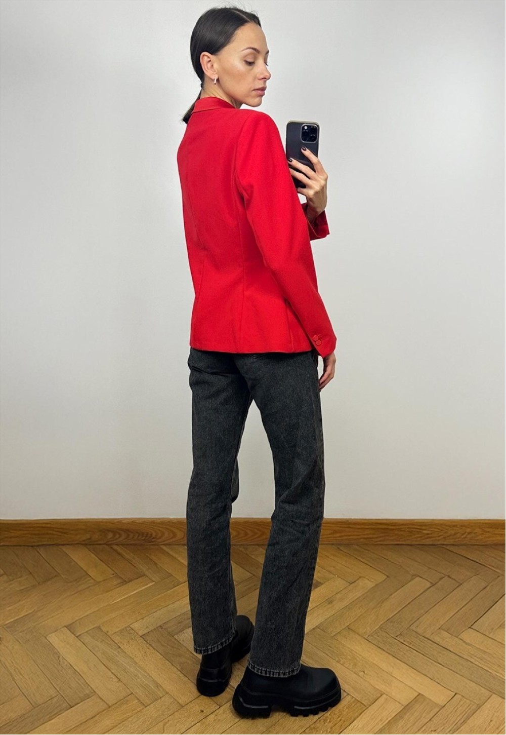 Vintage red blazerMade in SpainVery good vintage conditionNo tags , estimated wool blend , viscoseTag size EUR XL , USA XL , MEX 32 , please see measurementsMeasurements ( laying Vintage red blazerMade in SpainVery good vintage conditionNo tags , estimated wool blend , viscoseTag size EUR XL , USA XL , MEX 32 , please see measurementsMeasurements ( laying flat)Shoulders 39 cm/ 15.4 inchesArmpit to armpit 44 cm/ 17.3 inchesSleeve 62 cm / 24.4 inchesLength 65 cm/ 25.6 inches