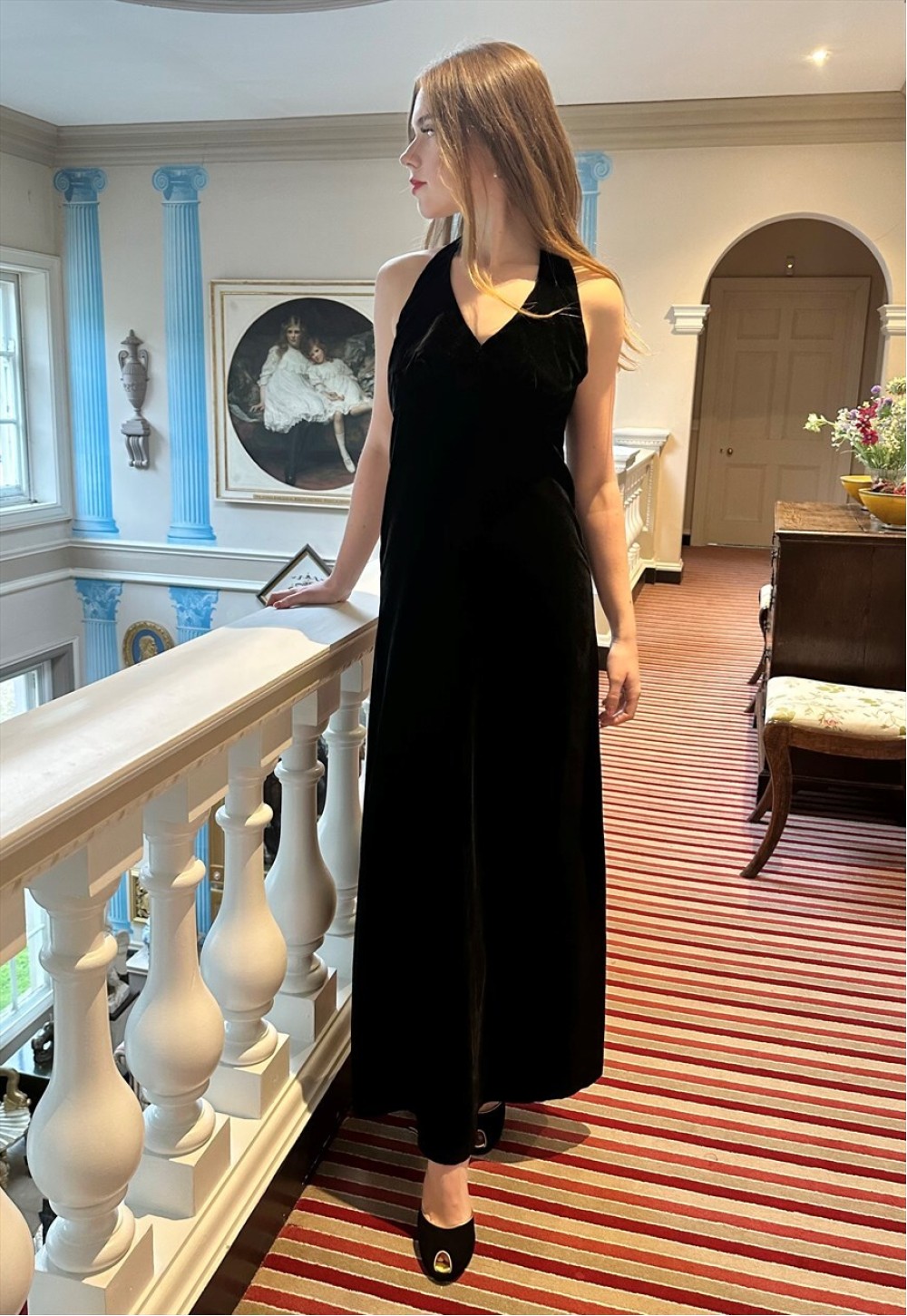 70's Vintage Black Velvet Halter Neck Maxi Dress