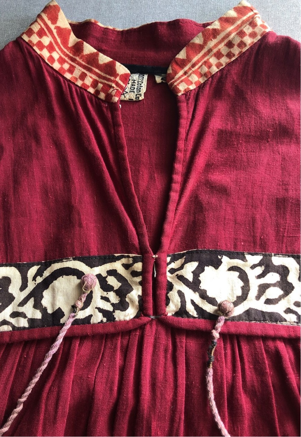 Approximate measurements in inches:Bust:21Length:44Shoulder to shoulder - 15Pit to cuff - 16.5Vintage 70's bell sleeve smock style midi dress.Size S in the label but generous in size Approximate measurements in inches:Bust:21Length:44Shoulder to shoulder - 15Pit to cuff - 16.5Vintage 70's bell sleeve smock style midi dress.Size S in the label but generous in size so would fit a small to medium.Dress pulls on over the head.Contrasting aztec style print.Made in India.Indian cotton fabric.Good vintage condition light general pre wear.Model is 5ft 9 and a size 6-8. Some garments may have been pinned to fit model.All of our vintage items are in very good condition but as they are pre-worn there may be some general wear. We endeavour to mention any defects if applicable. You are investing in a timeless sustainable garment. Thank you for shopping The Archive. Follow us on instagram: thearchivelondon xx