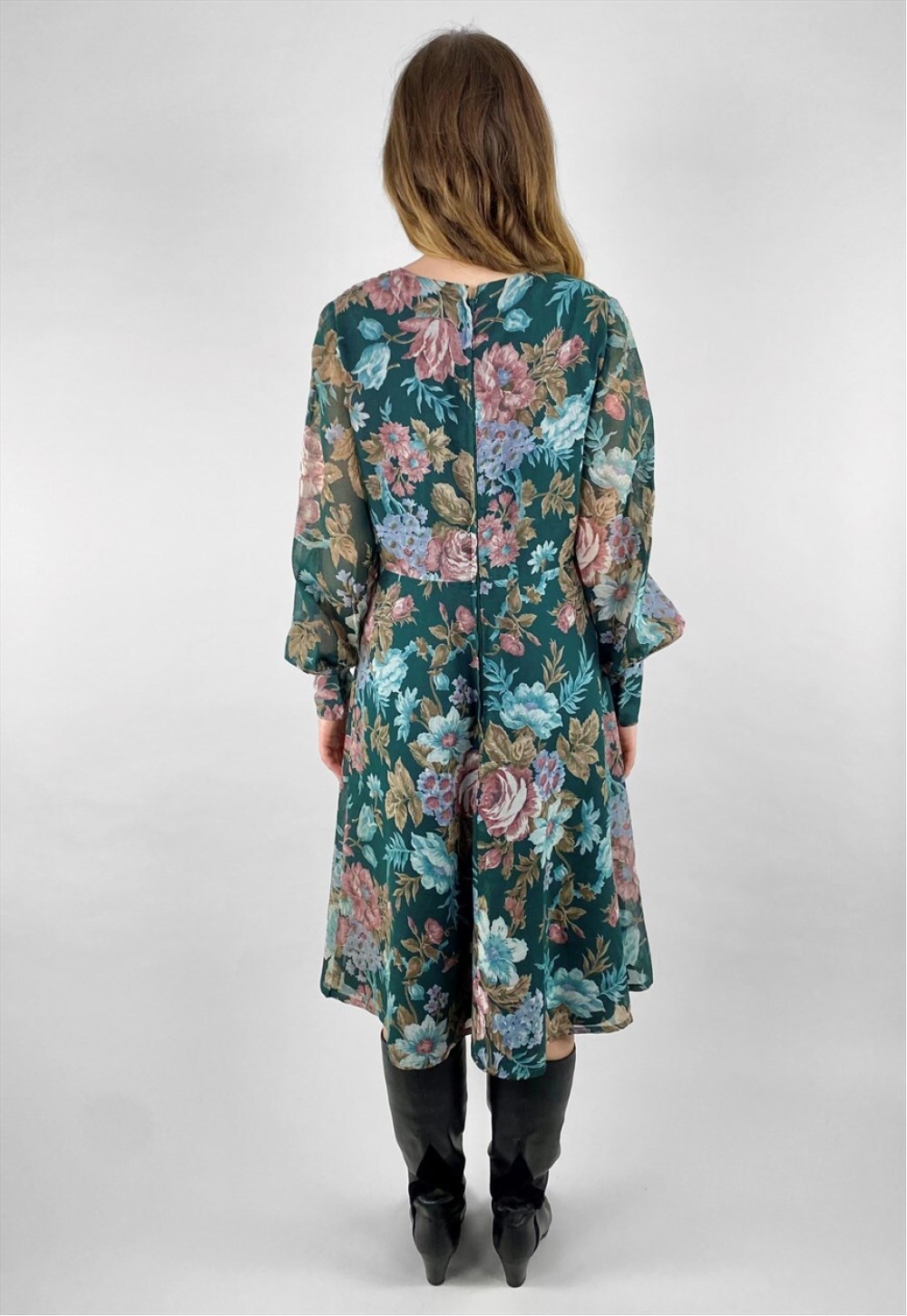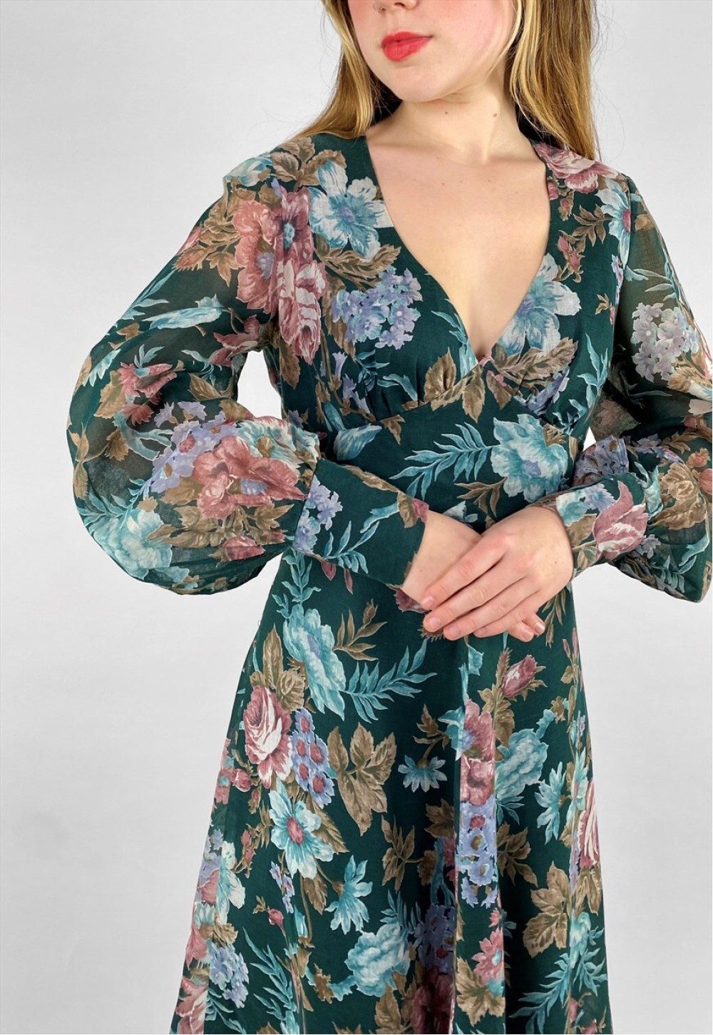 Kati Laura Phillips 70's Vintage Floral Green Dress