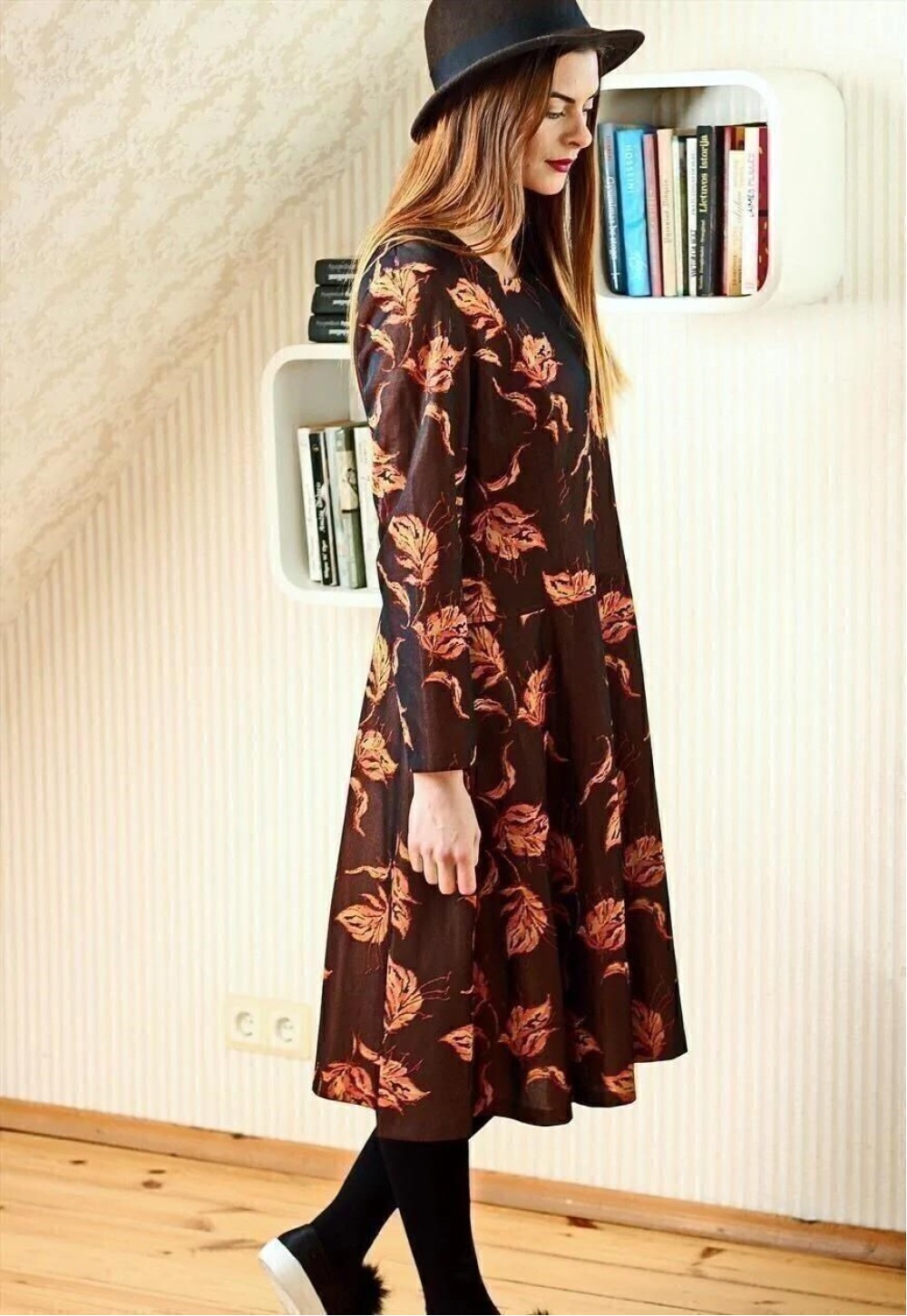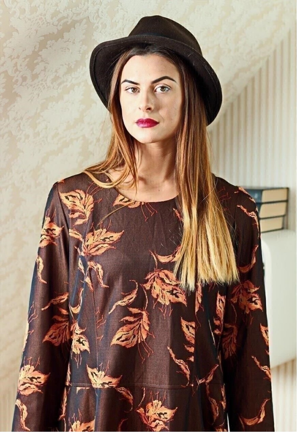 Gorgeous brown long sleeve vintage dress with orange flowers. The size on the label is 21. Model is a UK 10 and 5"6. Length of the dress is 41 inch, chest 20, waist 20 inches, has a zip at Gorgeous brown long sleeve vintage dress with orange flowers. The size on the label is 21. Model is a UK 10 and 5"6. Length of the dress is 41 inch, chest 20, waist 20 inches, has a zip at the back. Please note this is a vintage item so minor signs of wear are expected.
